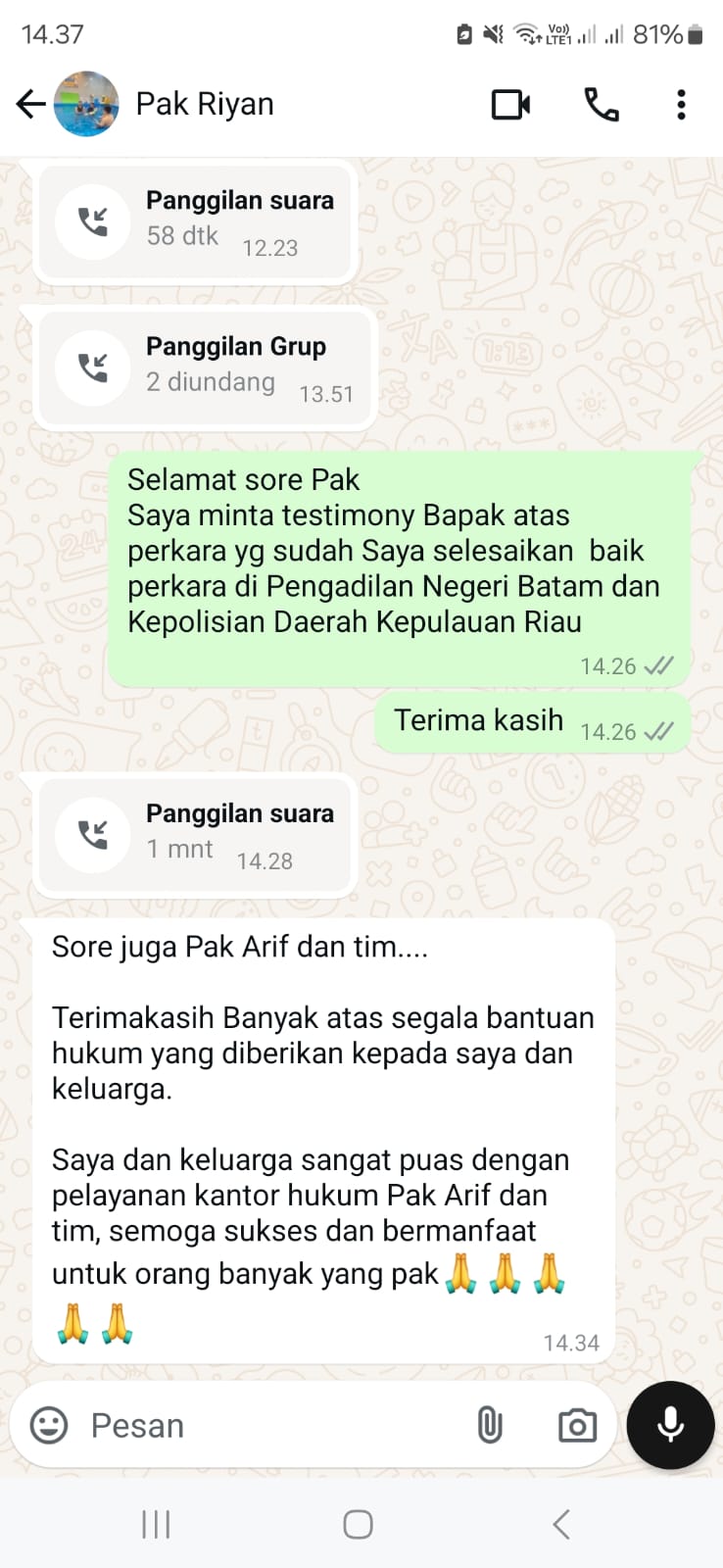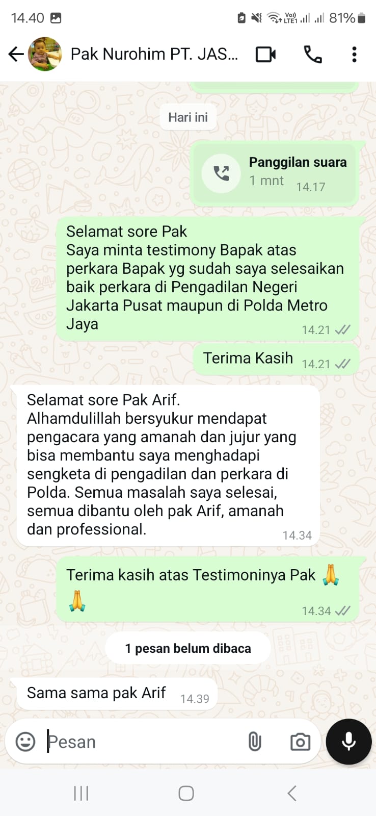 Banyak klien yang sudah merasakan layanan hukum dari Kami dengan tingkat kepuasan yang tinggi.